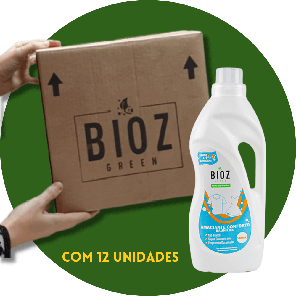 Nessa compra você leva a caixa fechada com 12 unidades do Amaciante Conforto 900ml - Bioz Green