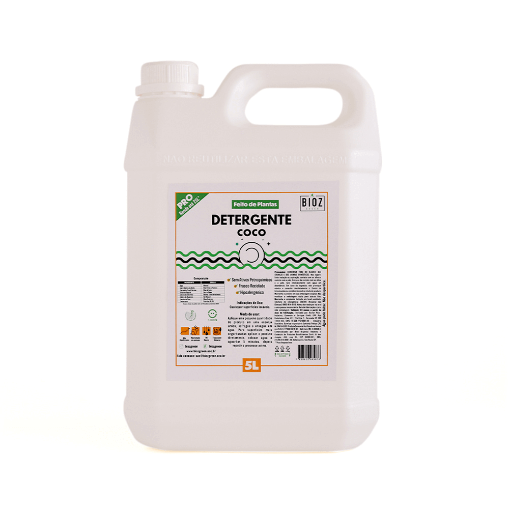 O Detergente Coco 5 Litros permite maior economia de dinheiro e tempo, ideal para casas com alto consumo.