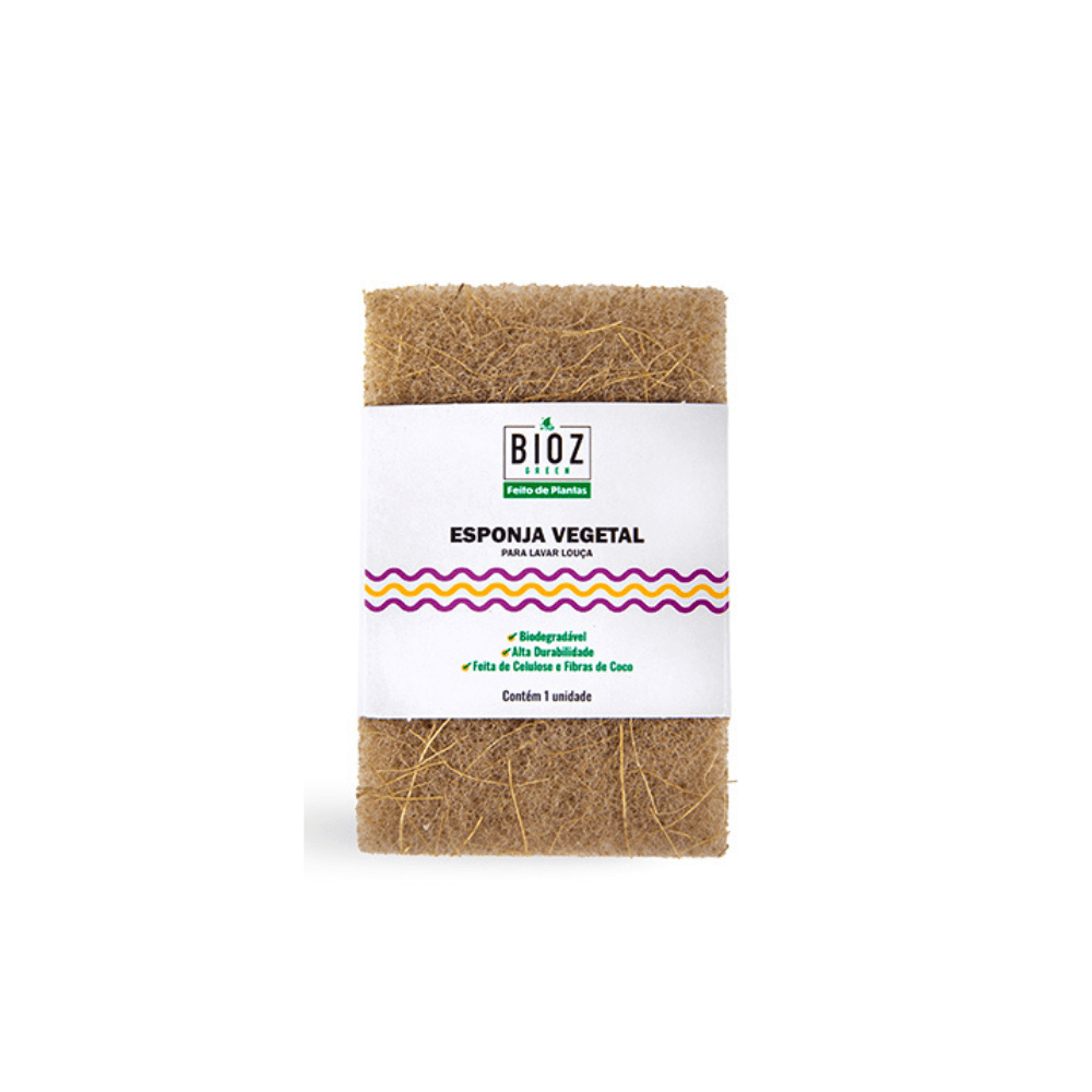 Nossa esponja vegetal é feita de celulose e fibras de coco, uma forma segura e natural de lavar suas louças.