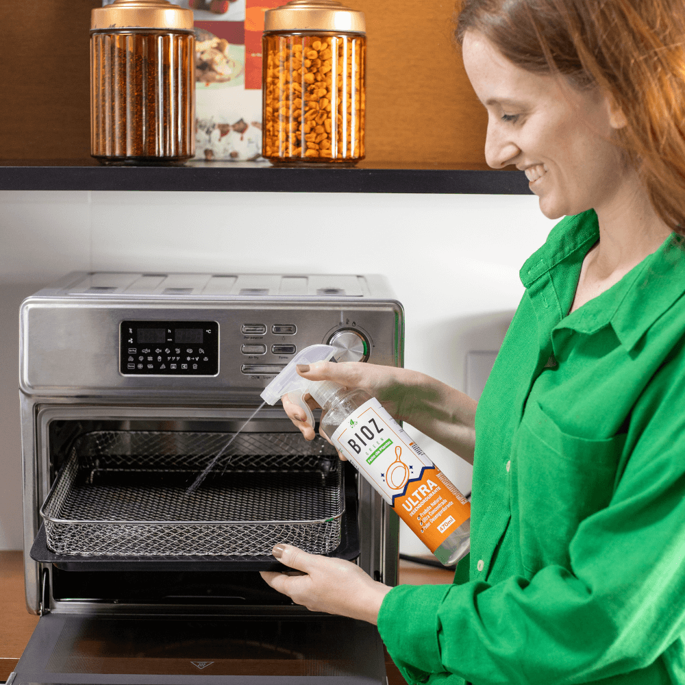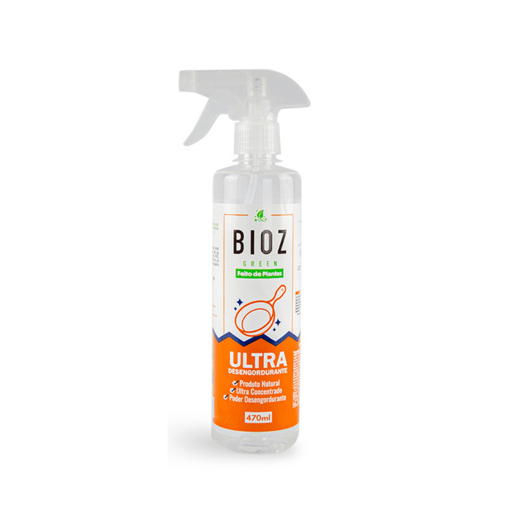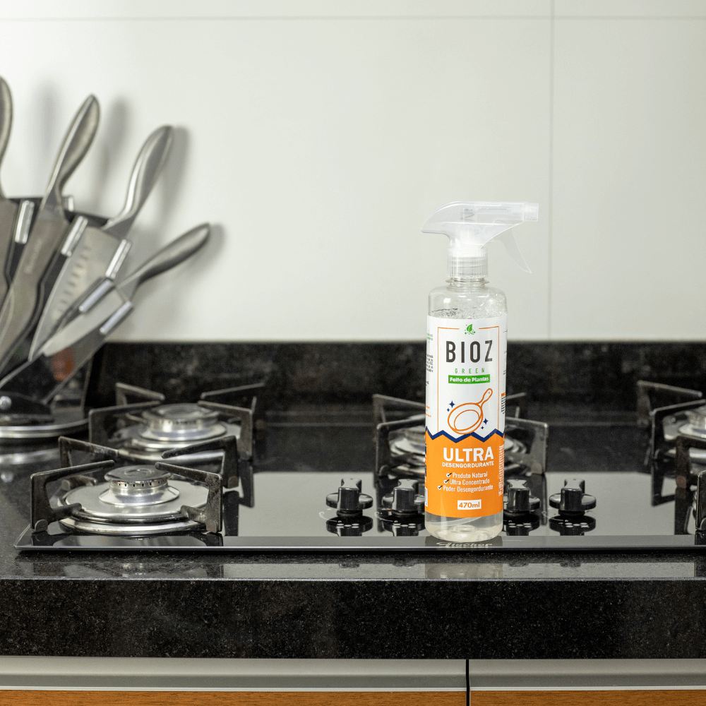 Diga adeus à gordura difícil com o Ultra Desengordurante natural ! O Ultra Desengordurante Bioz Green é um limpador natural desencrustante, com alta performance na remoção de gordura pesada, ideal para o dia a dia da sua cozinha de qualquer casa. Indicado para limpeza eficaz de panelas, frigideiras, chapas, coifas, inox, ferro fundido, assadeiras, fogão, forno e principlamente para air fryer, sua fórmula vegana e biodegradável limpa sem agredir superfícies ou a sua saúde.